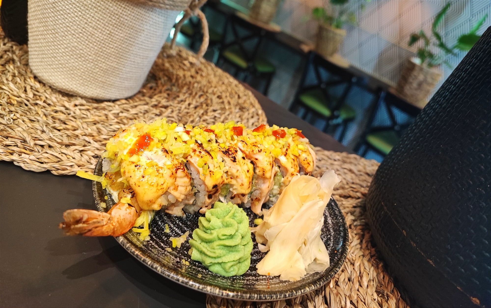 Futomak z krewetką w tempurze z papryczkami jalapeño na serku philadelphia